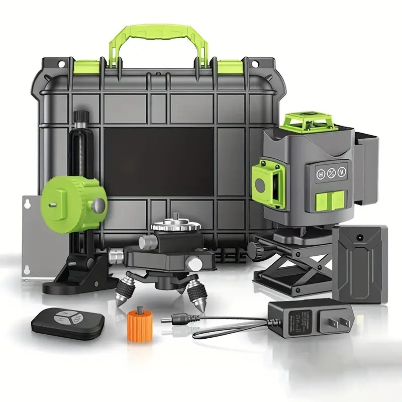 Self-leveling 16-line 4D laser level with powerful green beams. Provides 360? horizontal and vertical coverage for precise alignment and measurement. Rechargeable and durable, this laser level is perfect for construction, remodeling, and DIY projects.